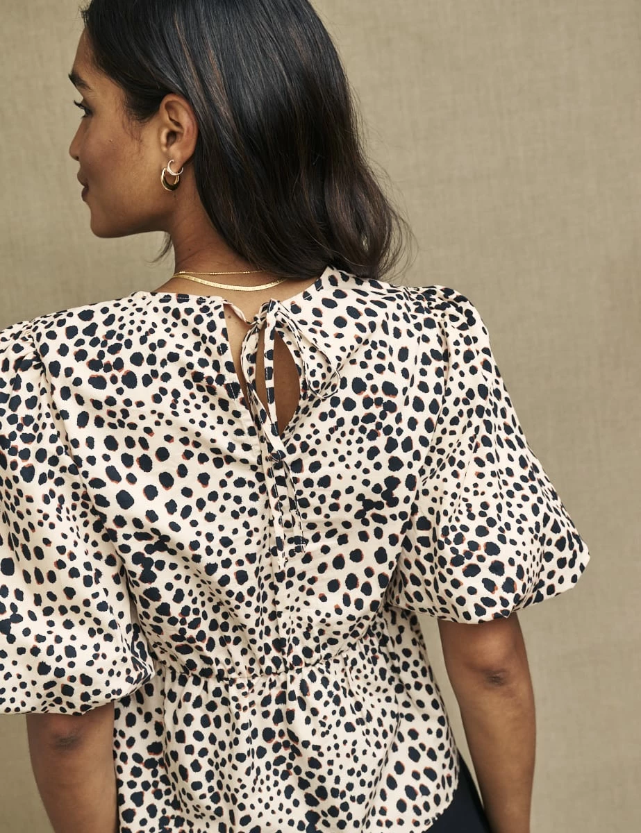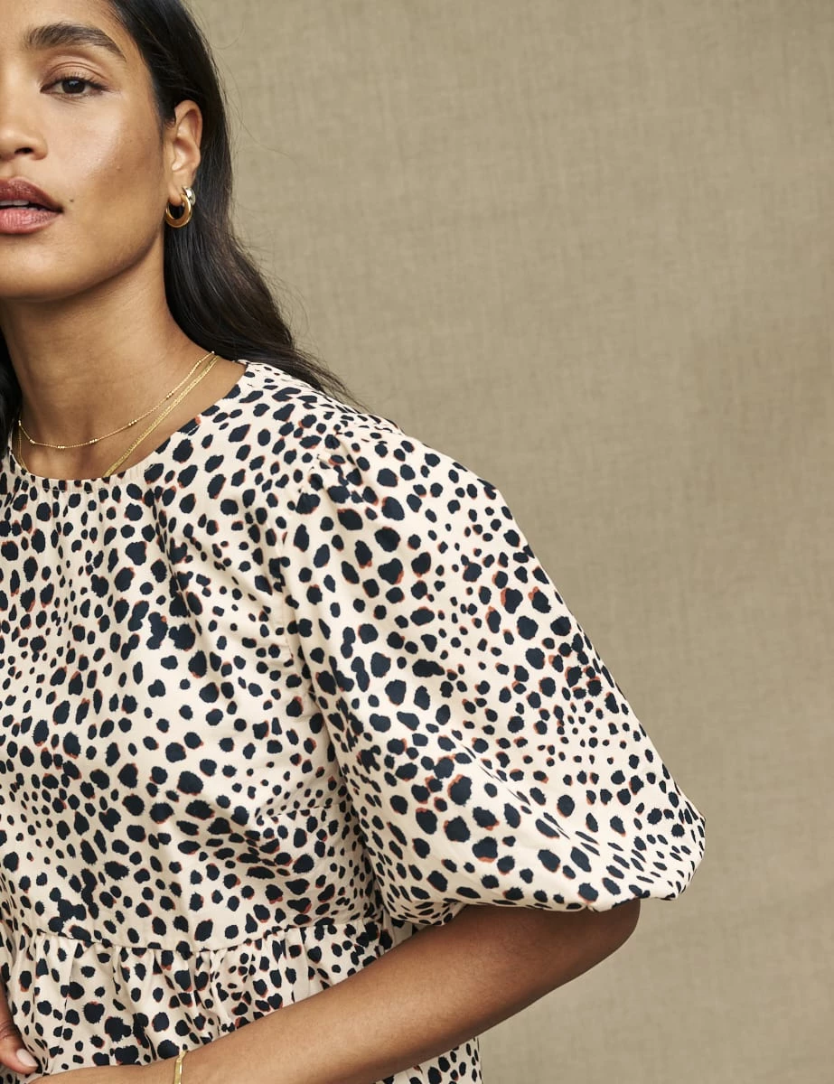 Throw on and go. In an effortless smock fit, Bernie’s sure to become your new favourite blouse. Made from organic cotton poplin, she’s light and airy in an endlessly stylish animal spot print. Wear yours everywhere with high waisted denim.