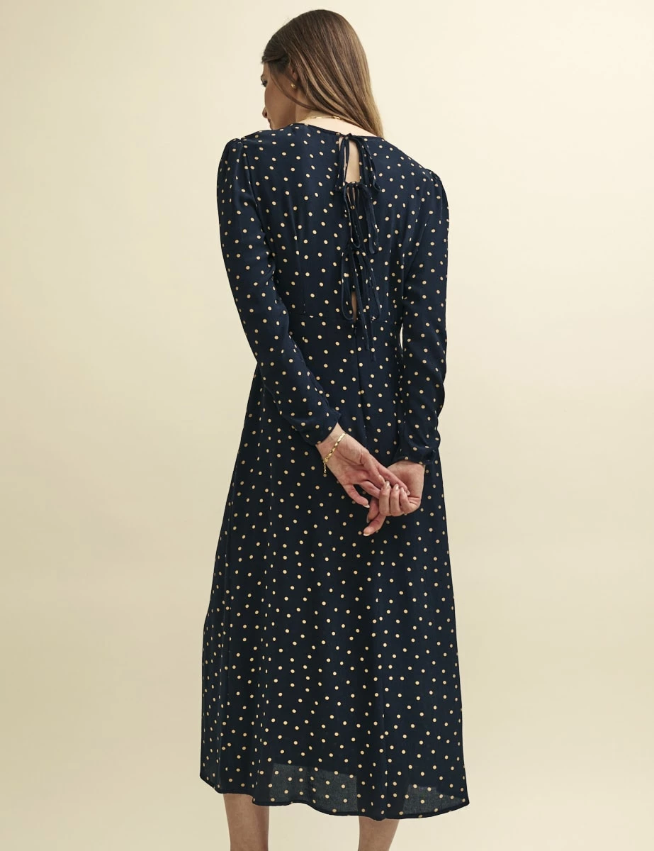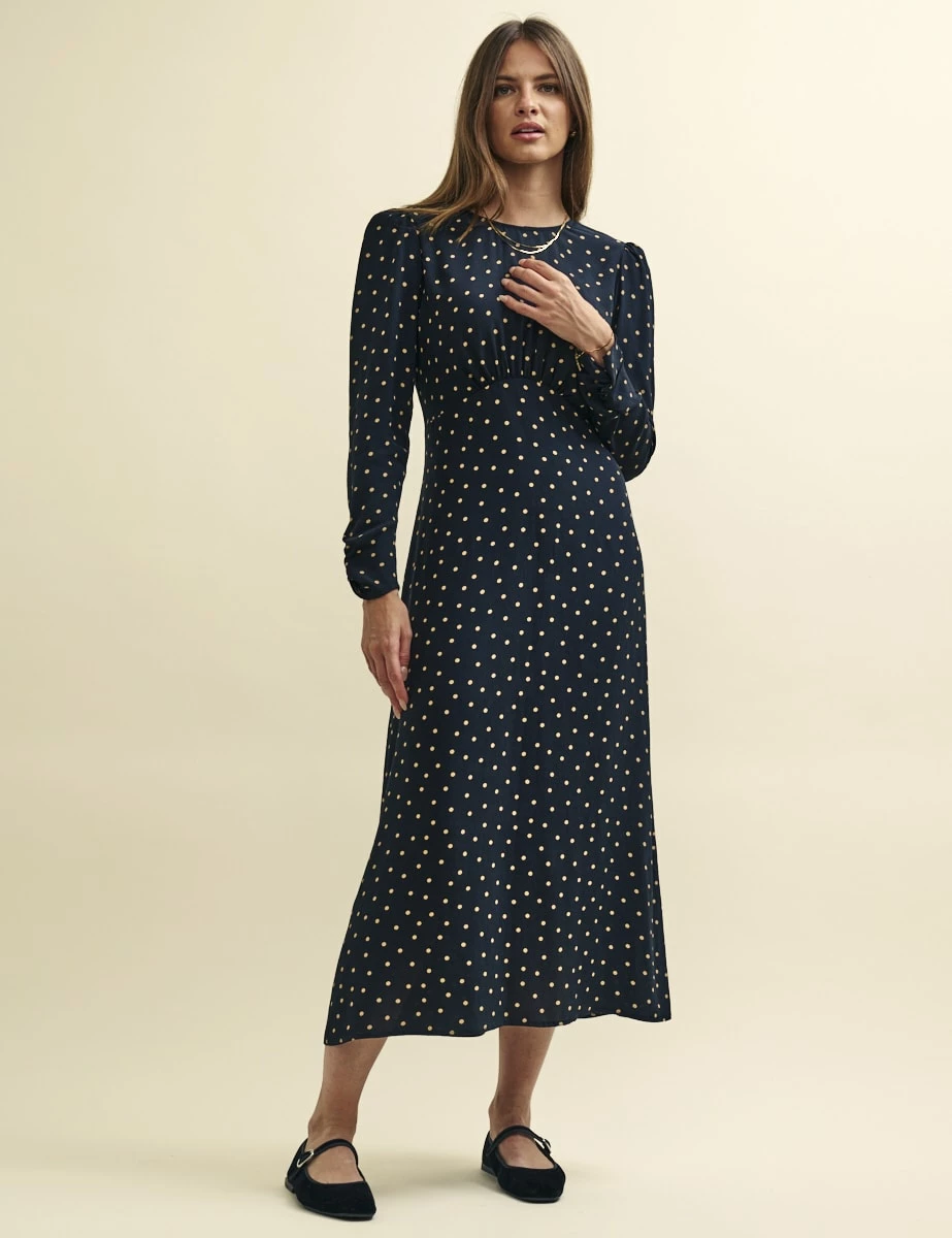 Black Spot Print Long Sleeve Sienna Midi Dress