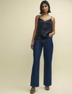 Nothing defines the collarbone quite like a square neckline. Cut from responsibly made viscose cut with a touch of stretch, this stylish black vest will go with everything from winter cargos to spring minis and year-round jeans. Add layers of chunky gold jewellery to dress it up.