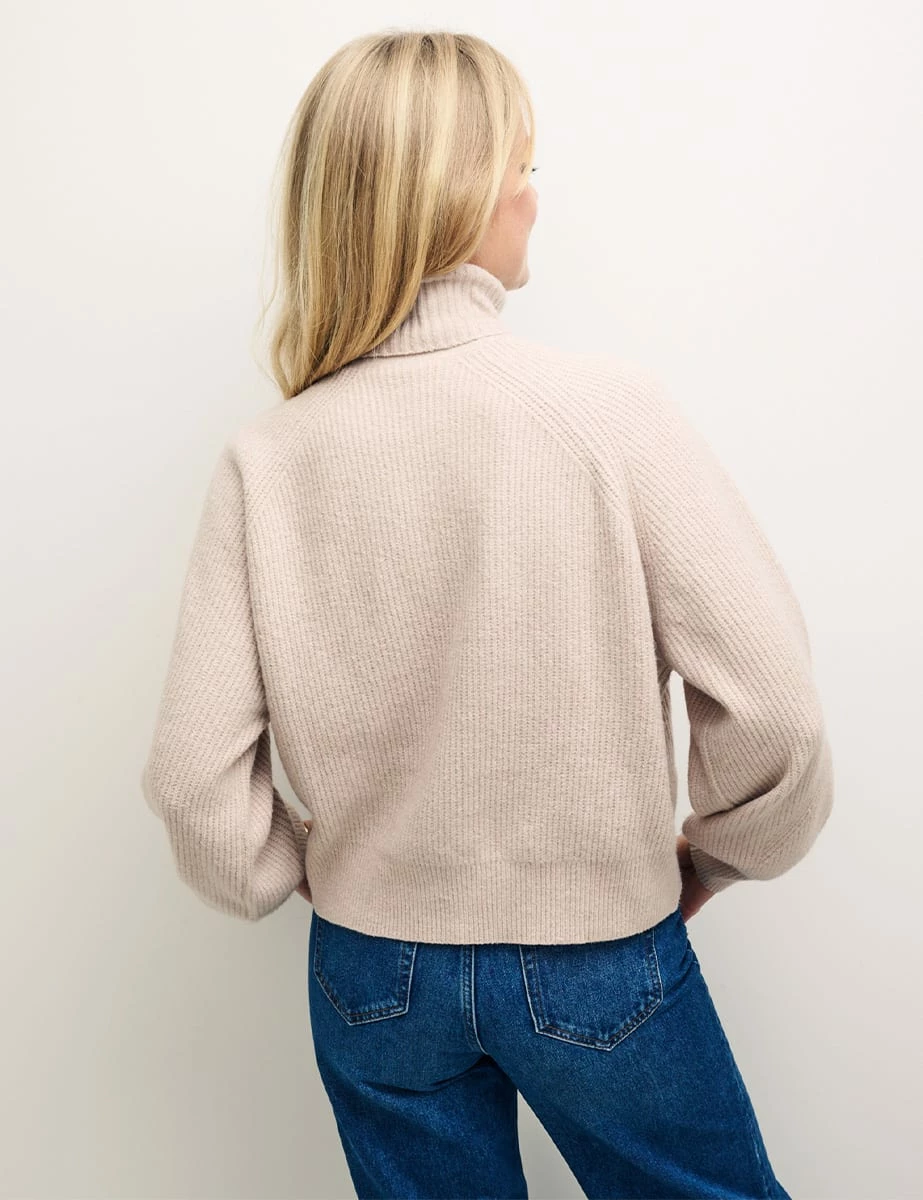 Make a cosy update to your current jumper collection with this cream layer. Featuring a funnel neck, voluminous sleeves and ribbed cuffs, the comfortable piece makes for the perfect throw-on over midi dresses or wear with denim and boots for a casual alternative.