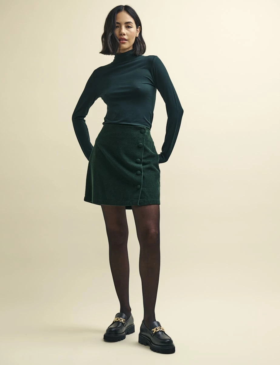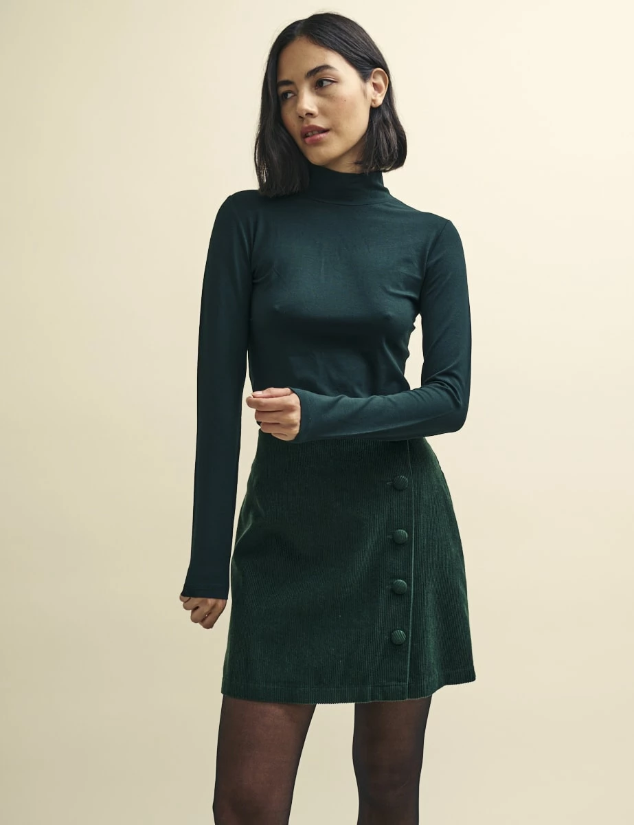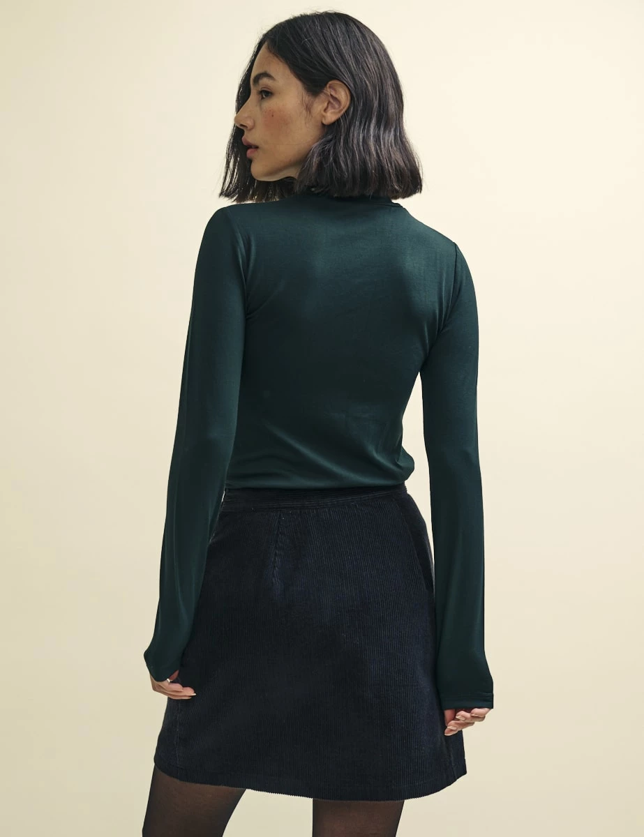 Layer up. This green funnel neck is needed in every wardrobe. Made from responsible viscose with a touch of stretch, it’s designed for a close cut. Style yours with everything you already own.