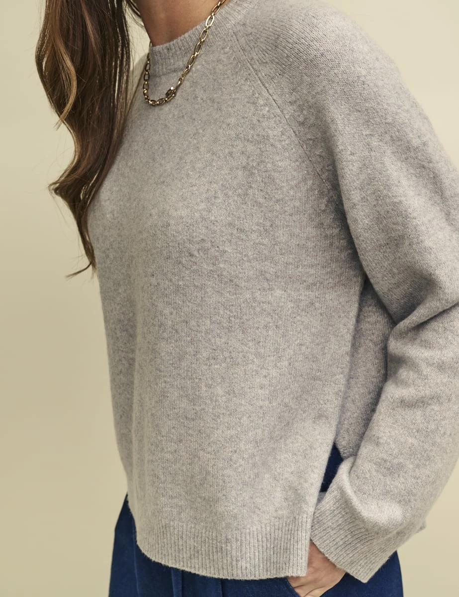 Truly timeless. Crafted from a responsible fabric blend, this grey jumper is made partly from recycled materials knitted with organic cotton. Side slits add to the laidback cut. We’re wearing ours with wide leg trousers.