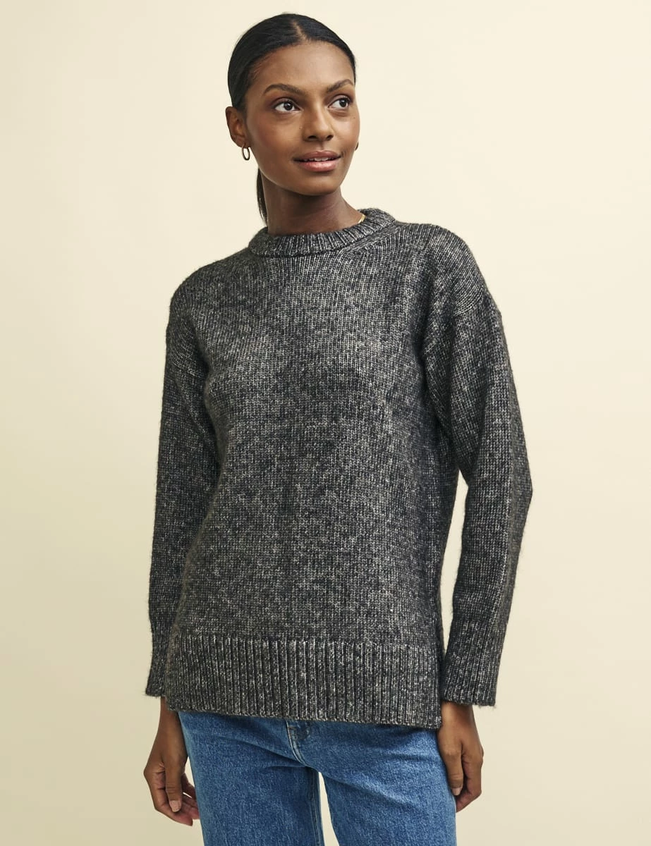 You’ll wear it all winter. The oversized fit and soft feel of this grey jumper makes it perfect for cold days. It’s been knitted from a blend that includes recycled materials and a touch of wool. We love the chunky ribbed trims. Style yours with everything you already own.