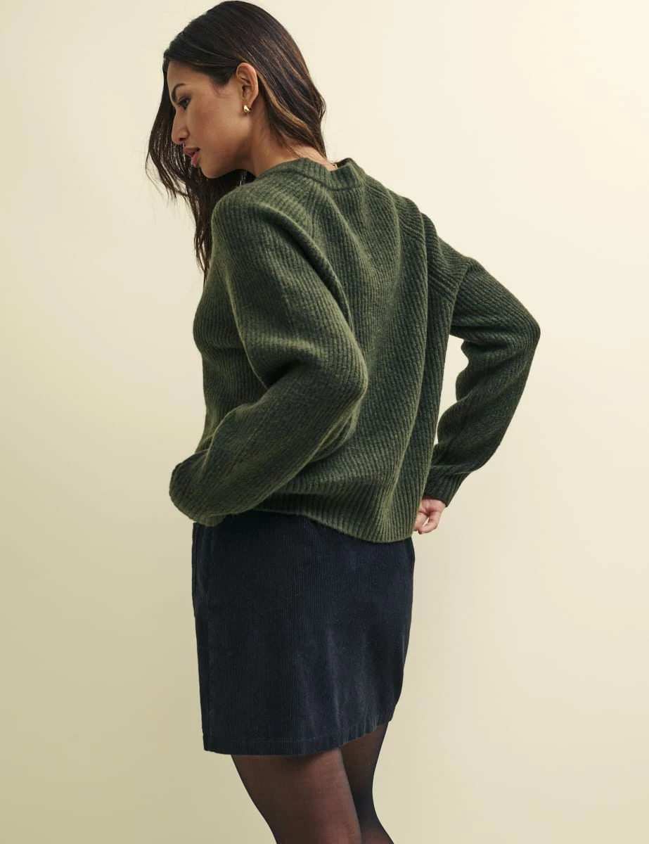 Your new favourite khaki jumper has arrived. It features a slouchy fit, long sleeves and a timeless neckline with a ribbed trim. Made from a super soft fabric blend that includes recycled materials and a touch of wool, it’s one you’ll want to wear at every opportunity. Just add jeans.