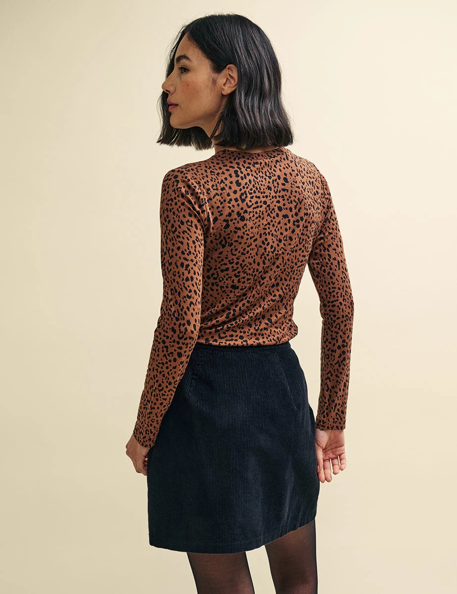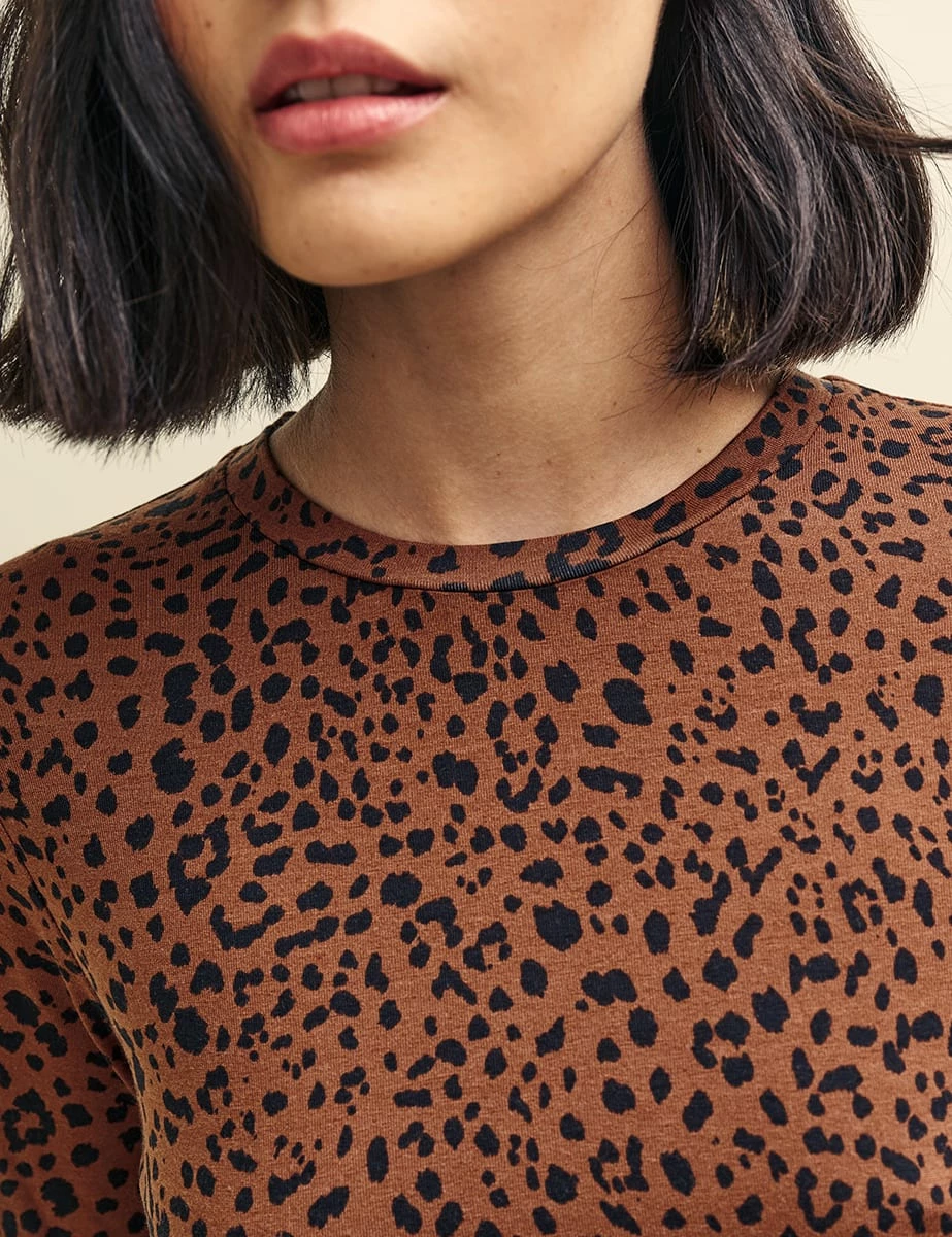 Leopard print is always a good idea. With a round neckline and long sleeves, this top is the perfect layering piece. It’s made from responsible viscose cut with a touch of stretch. Style yours under pinnies, waistcoats, dungarees and more.