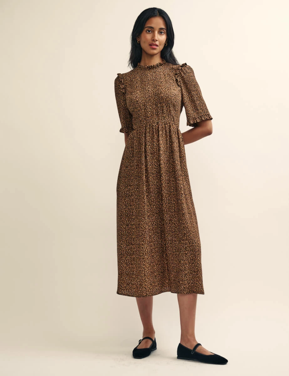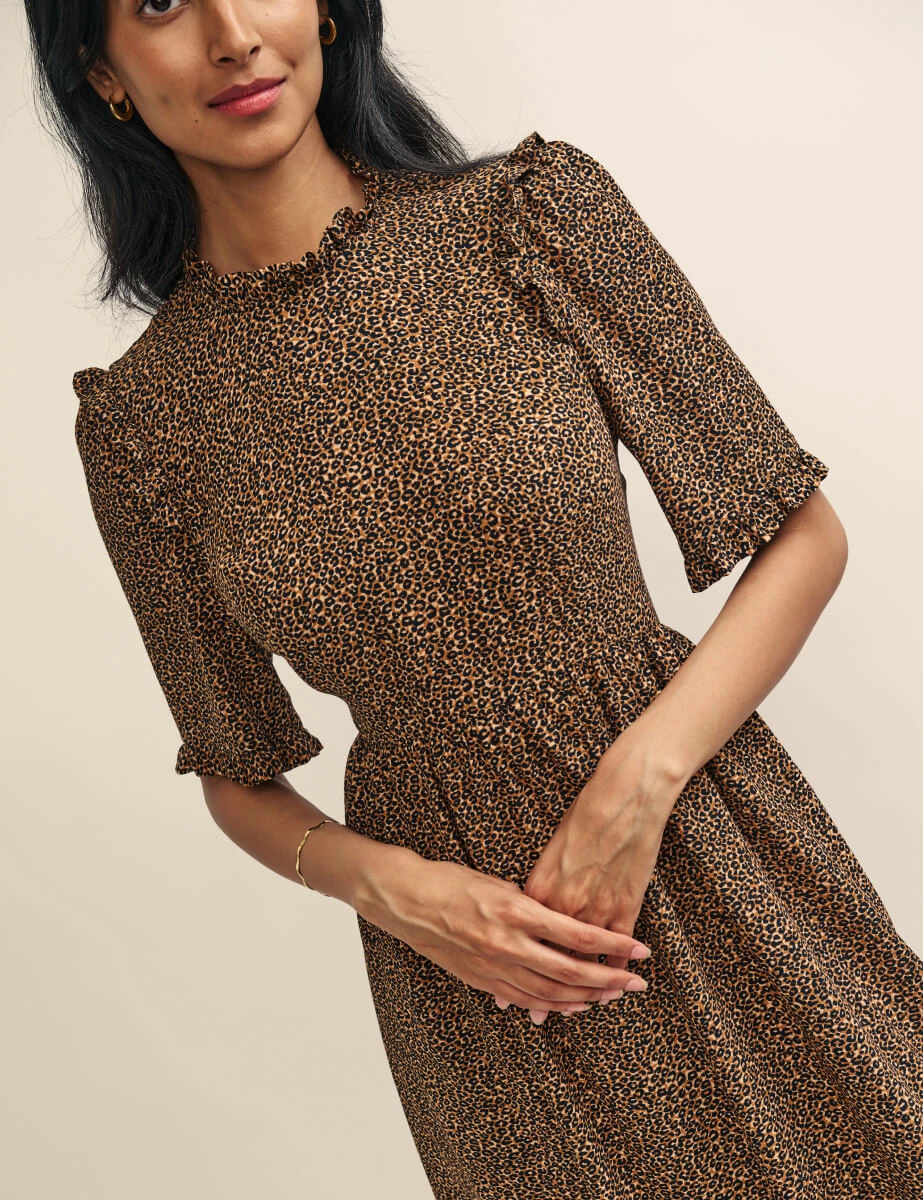 Leopard Print Ruffle Trimmed Ivy Midi Dress