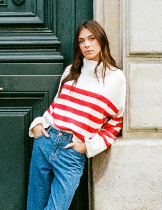 It doesn’t feel like autumn until you’ve pulled a roll neck jumper on. Made from a super soft fabric blend that includes recycled materials and a touch of wool, this knit is pure cosiness. We love the cream shade with red stripes. Style yours with your favourite denim.