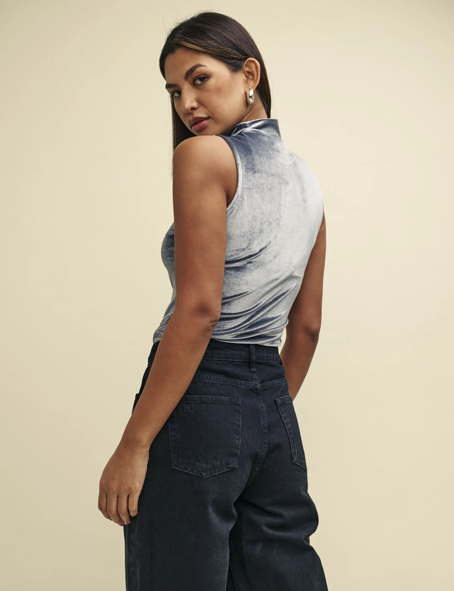 Silver Velvet Funnel Neck Sleeveless Lou Lou Top